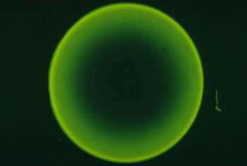 durch eine zentrale Auflage (erscheint dunkel). Die Peripherie der