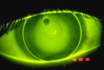 | Wird die Kontaktlinse ca. 1/10 steiler