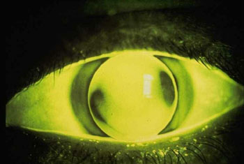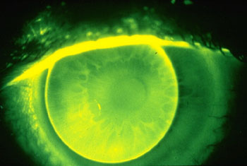 Das Zentrum der KL hebt sich etwas über die Hornhaut hinaus.