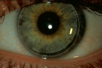 | Die Kontaktlinse zeigt nach dem Lidschlag